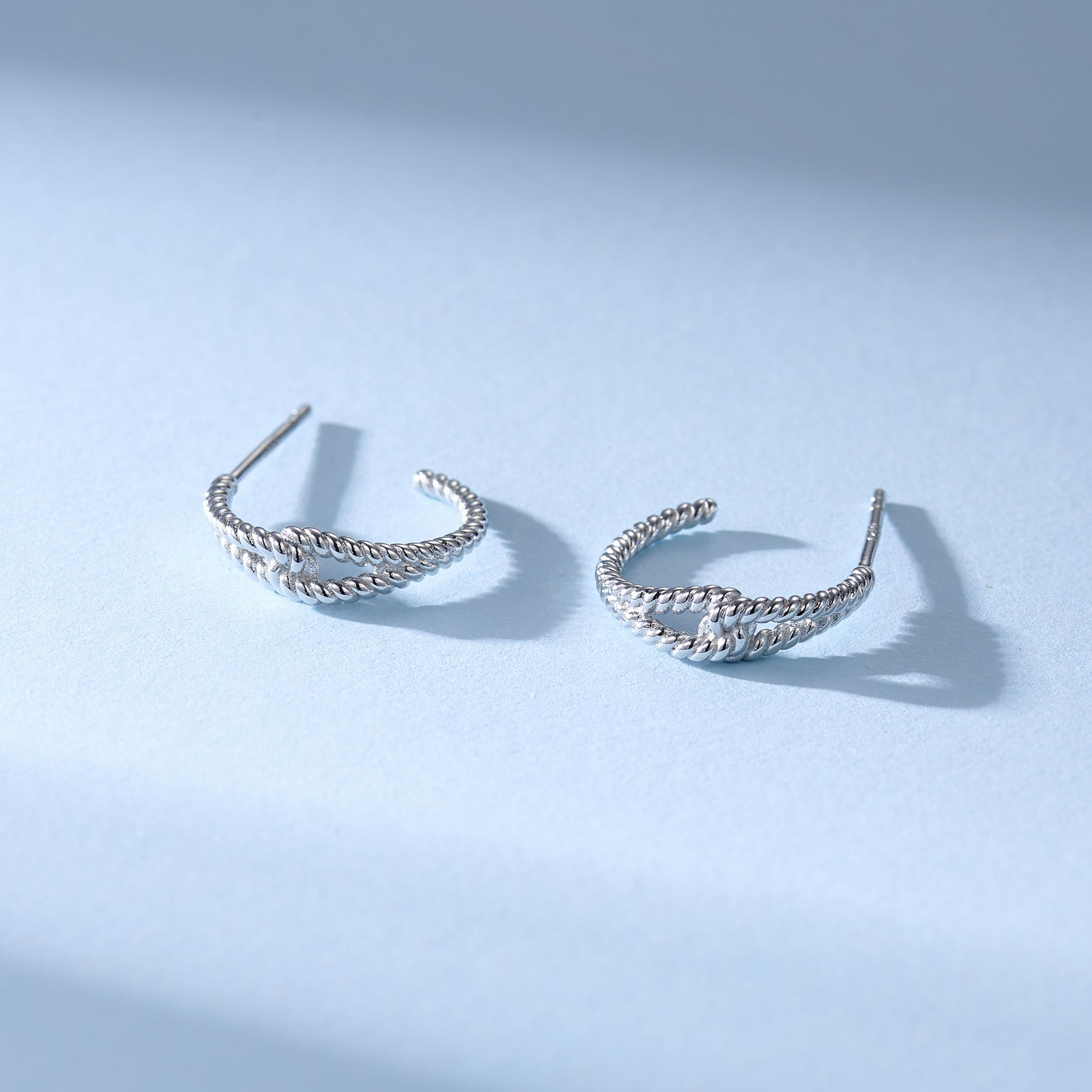 這款耳飾的靈感,源自於光線在交織線條間的自由穿梭。透過解構麻花紋理的柔美形態,將其與俐落的交叉結構重新凝練,構築出立體而靈動的空間美學。每個轉折都經過精細打磨,捕捉光線流動的軌跡,於耳際折射出靜謐而高級的光芒。