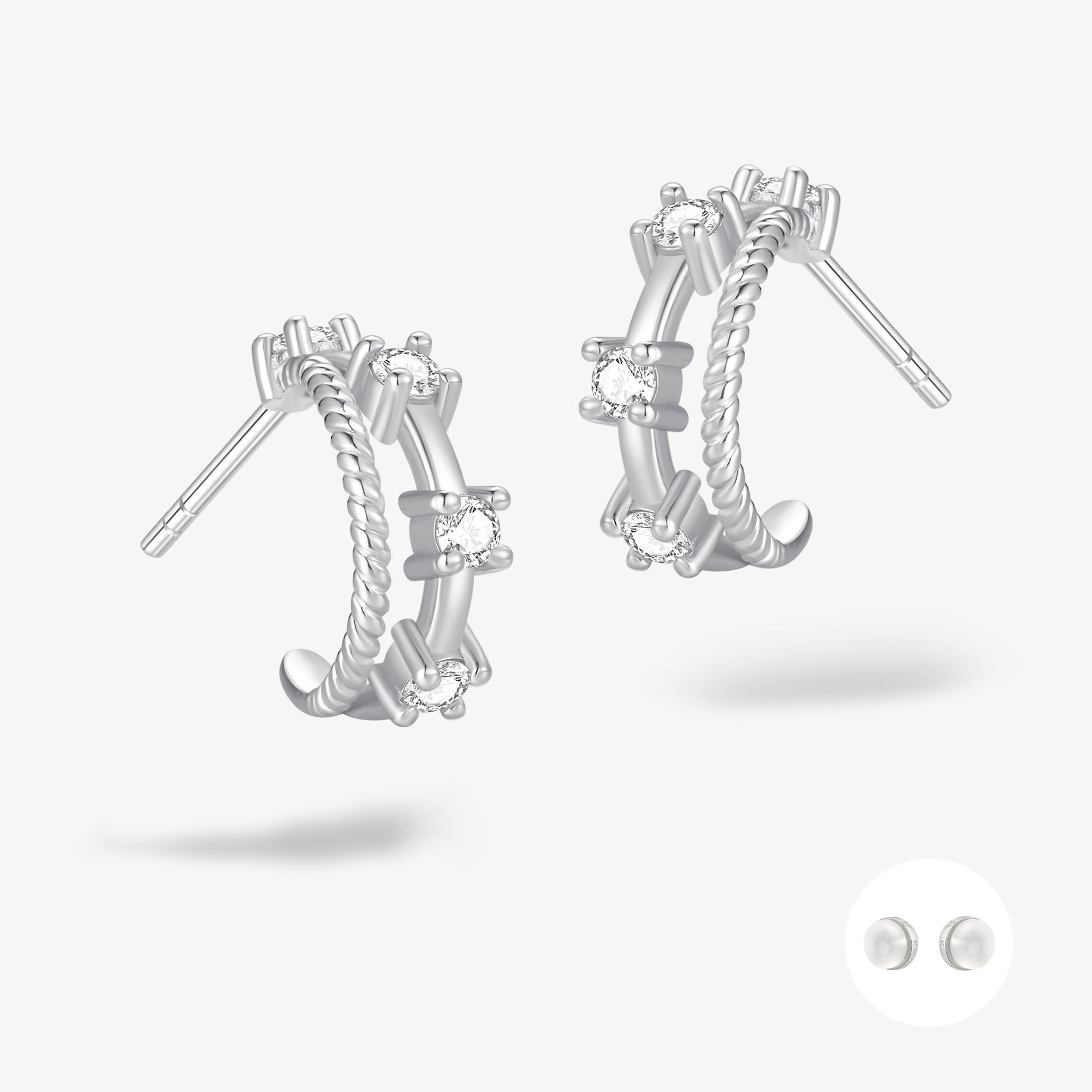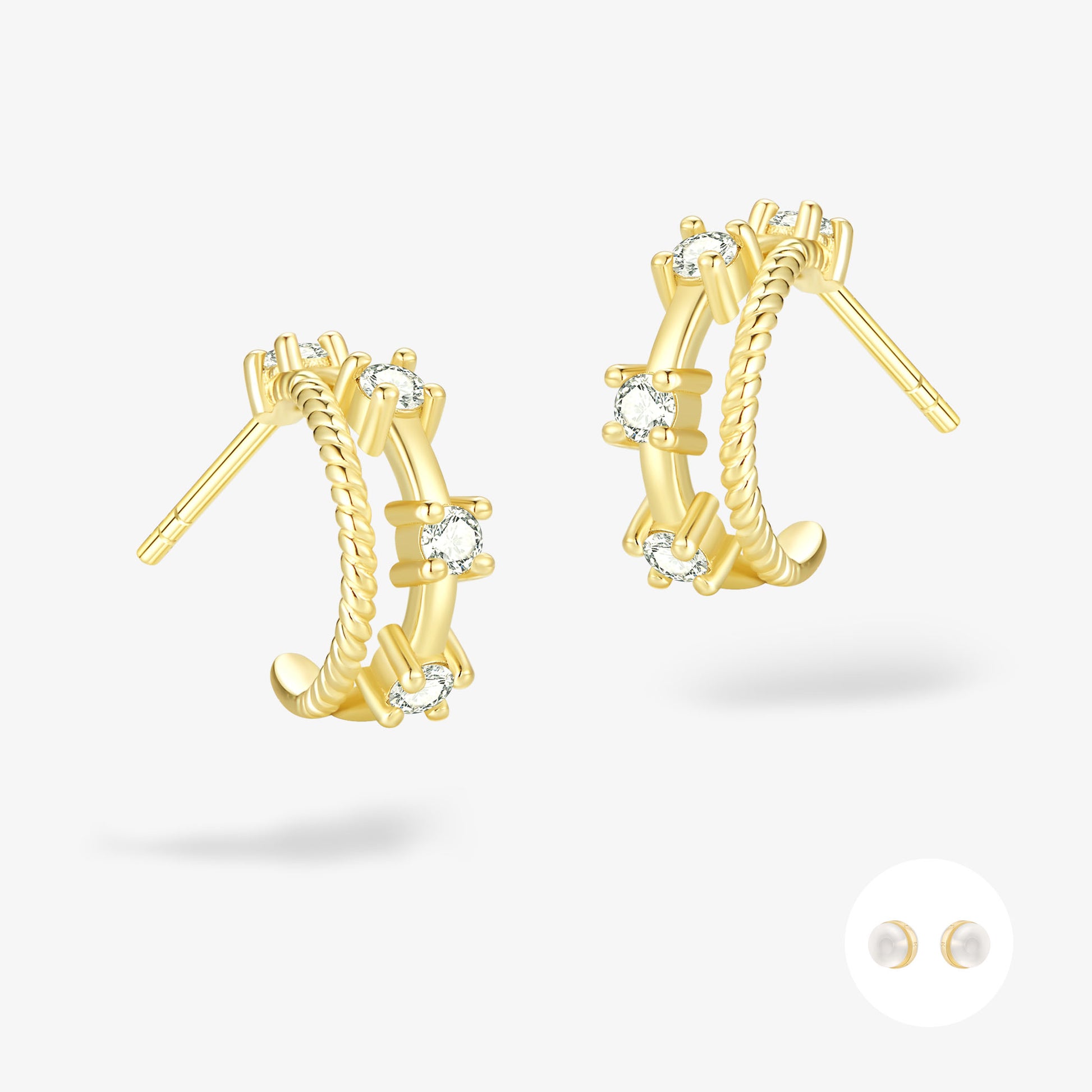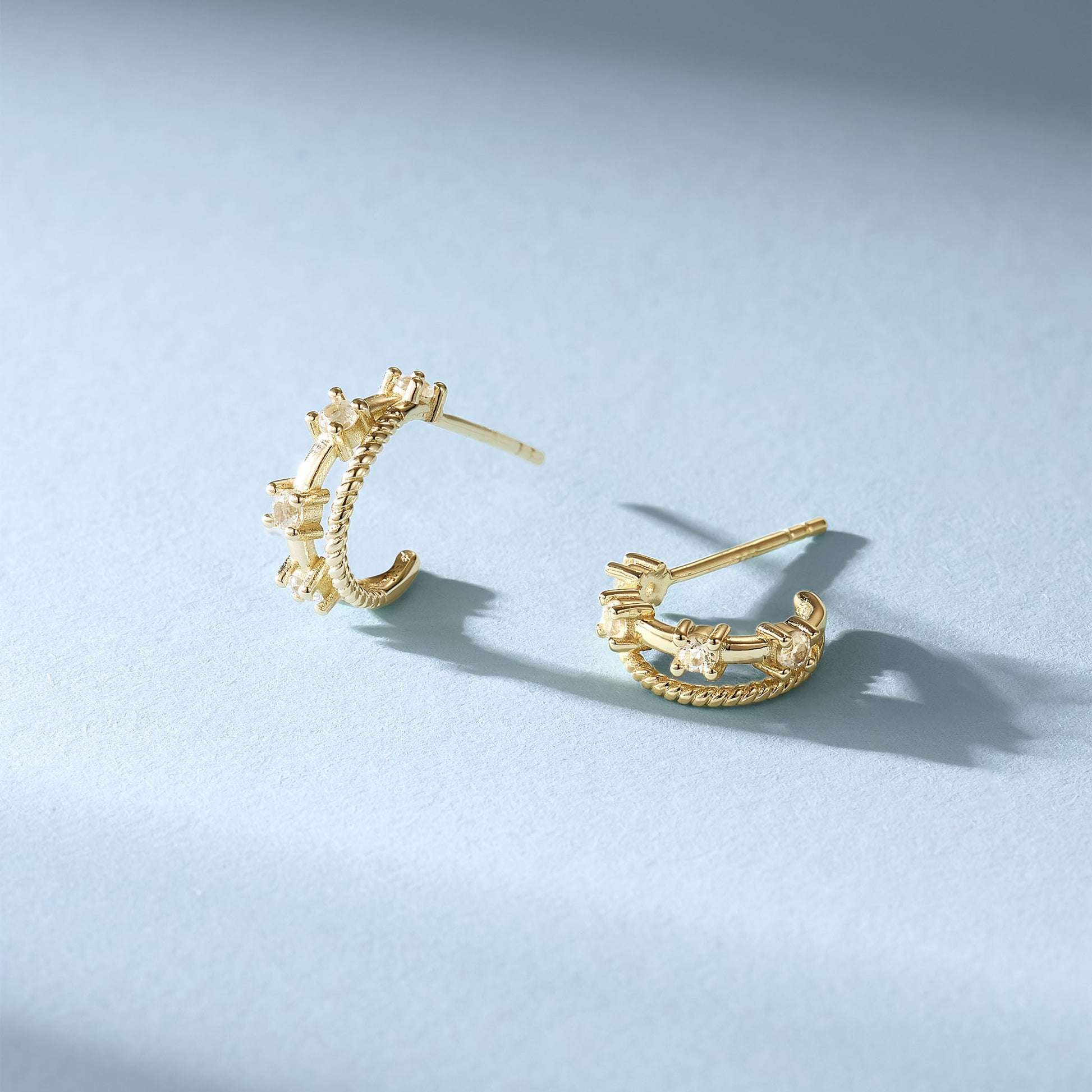 本品以精工雙圈架構,演繹星辰與寶石的環抱之姿。雙圈線條經過精密計算與打磨,層次錯落,勾勒出極具現代感的建築美學。