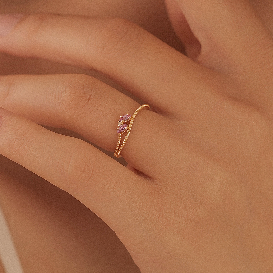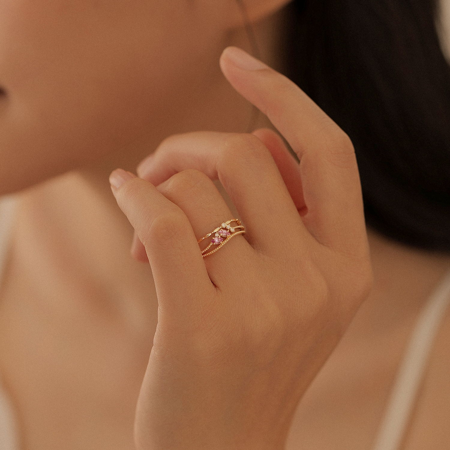 可單獨配戴,讓寶石的溫柔成為造型亮點;也可與同系列星燿戒指疊戴,打造沉浸式甜奢風格。