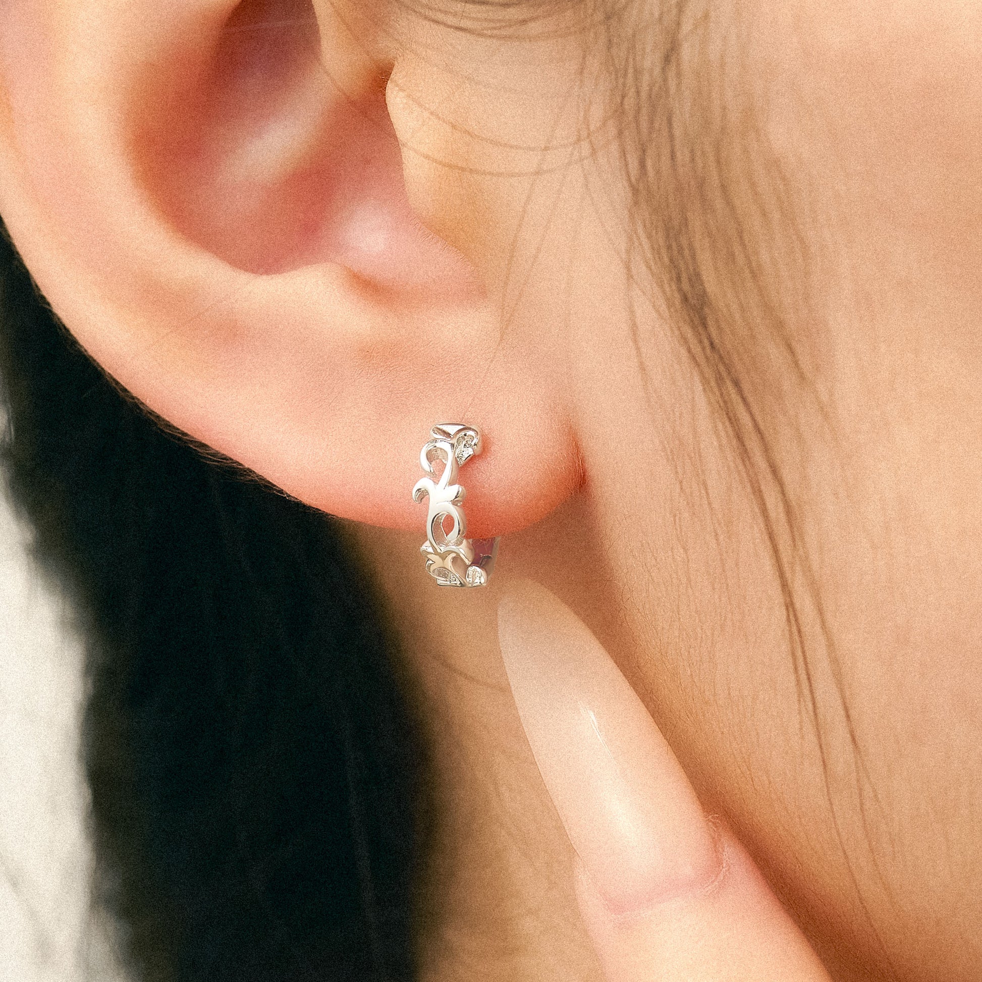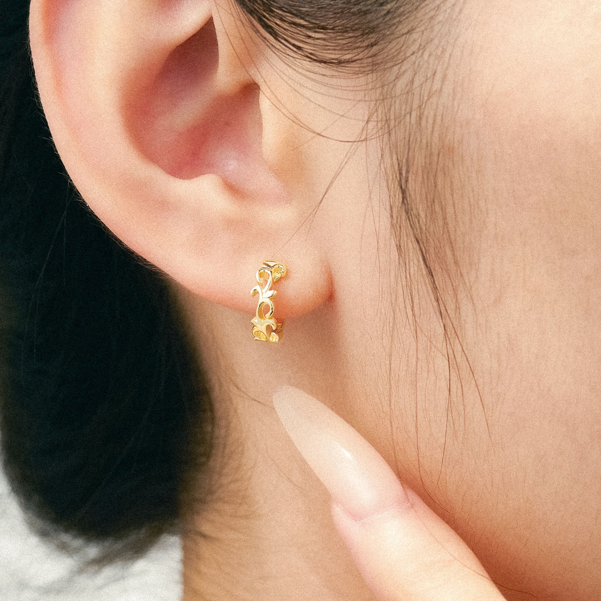 這款耳飾將植物藤蔓的生長軌跡凝練成可穿戴的藝術符號。刻畫每一段藤蔓的蜿蜒曲線,在方寸間再現植物自然生長的生命力。鏤空工藝讓造型輕盈又富有層次,彷彿將生長的藤蔓凝於耳畔。