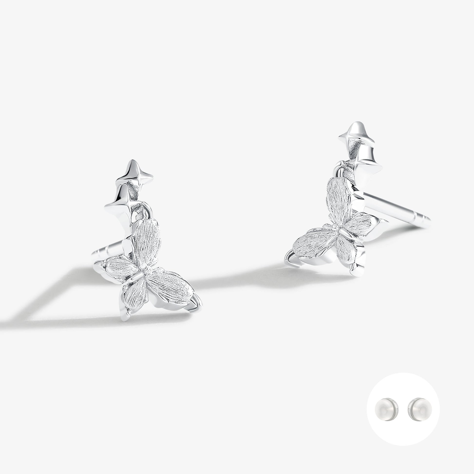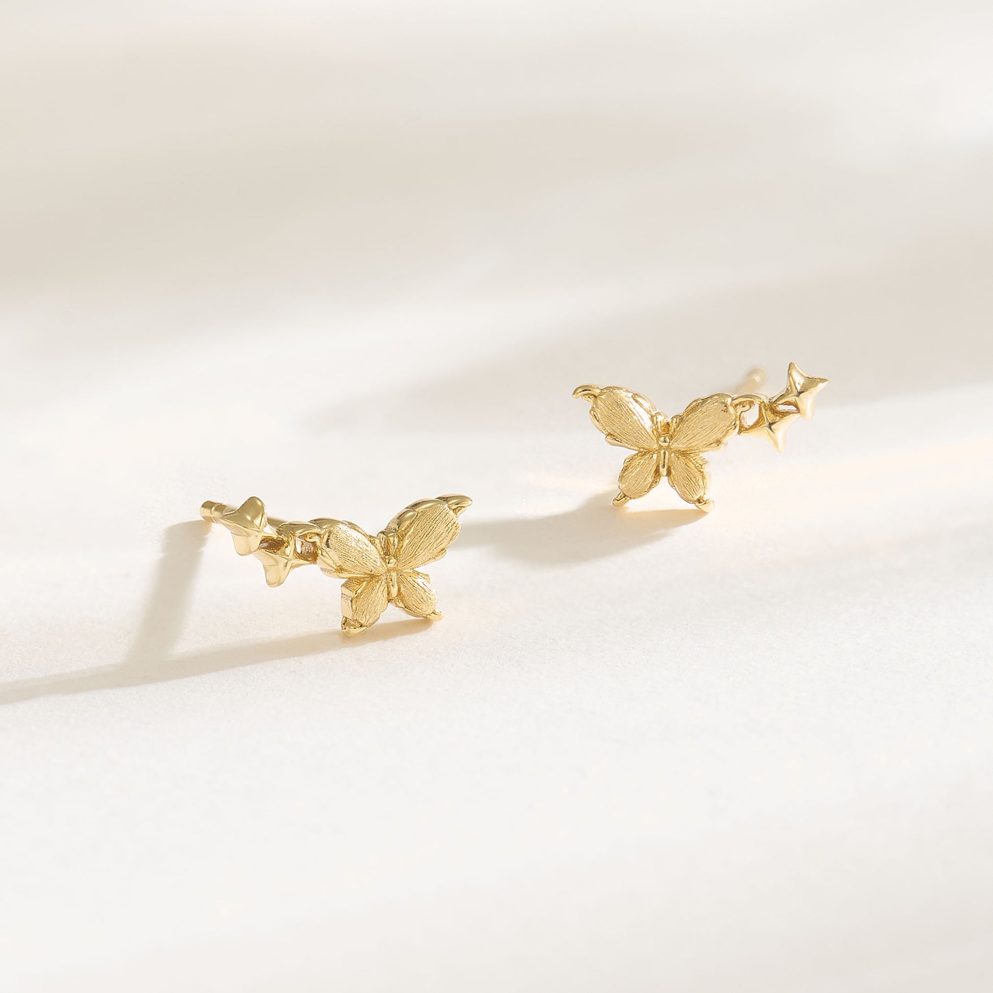 靈感源自於暮夜中蝶與星光的邂逅。運用傳承的手工拉絲技藝,雕琢出蝶翼的天然肌理,使其在光影流轉間呈現如呼吸般的立體質感。雙星懸於蝶翼之上,定格的美好時刻。