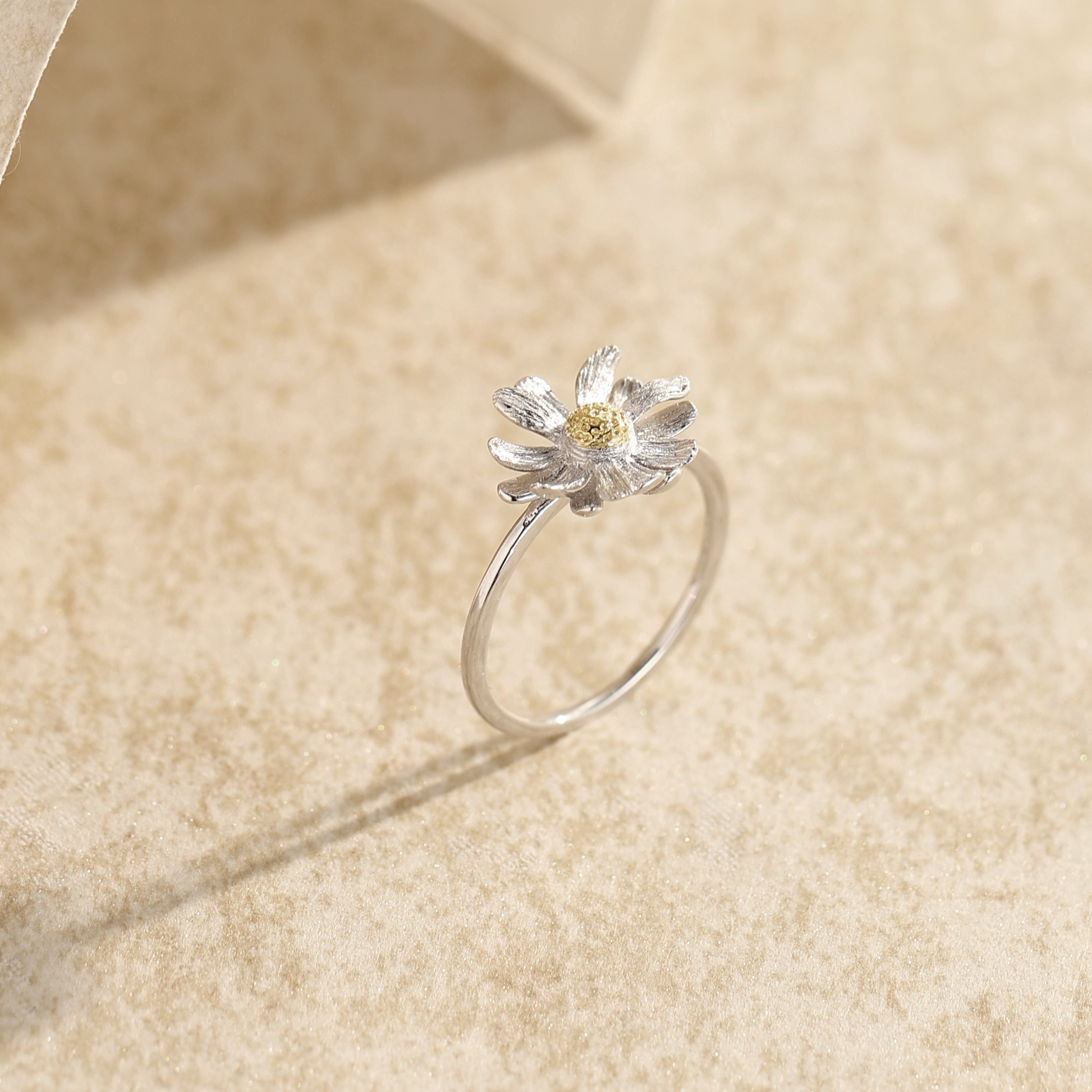 讓盛放的雛菊,在您的指間定格為永恆的誓言。雛菊戒指以立體飽滿的造型,賦予指尖盎然生機與藝術感。無論是單獨配戴展現個性,或是與其他簡約指環疊戴搭配,都能創造出豐富的層次感。