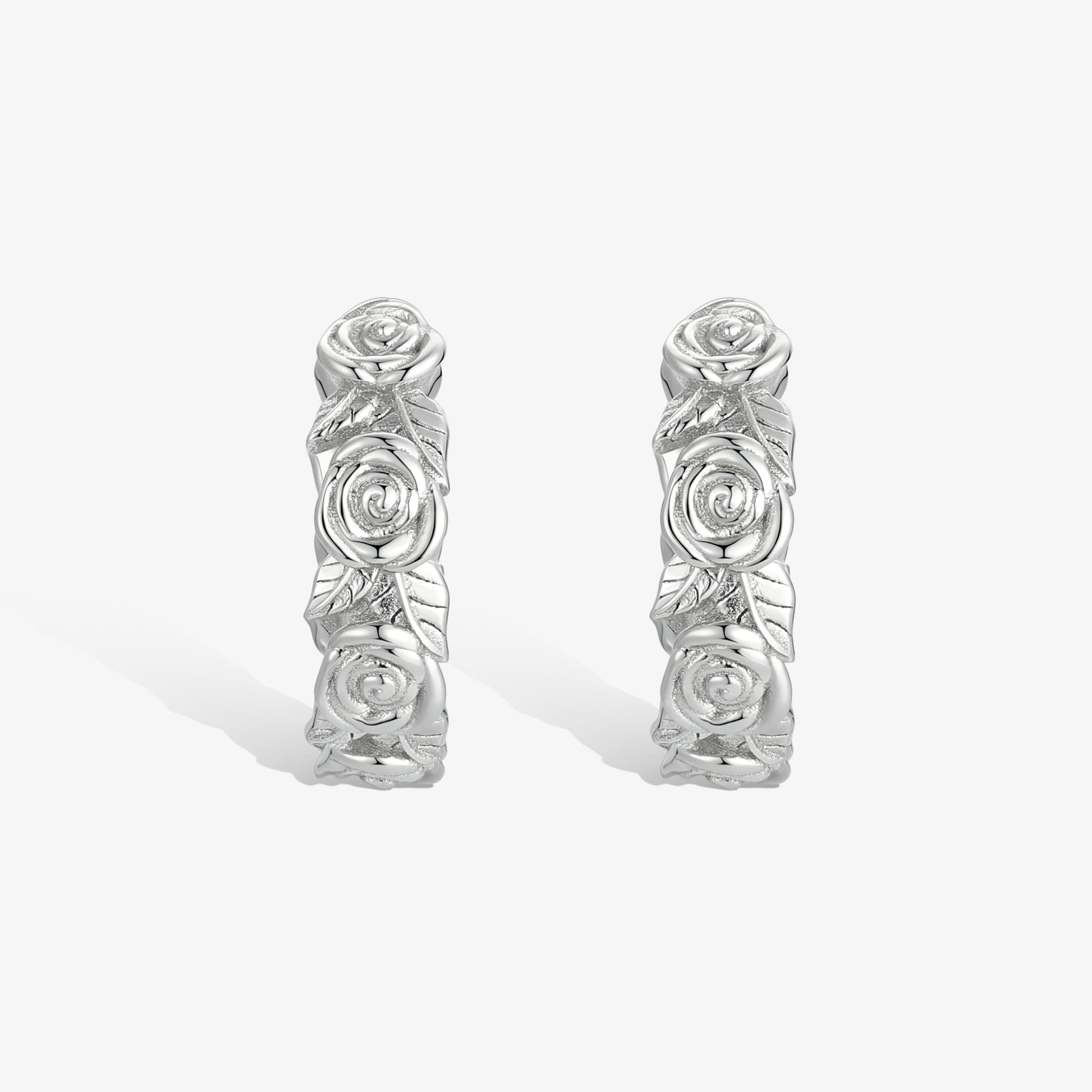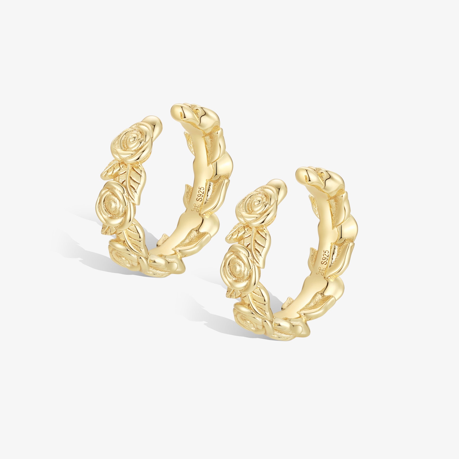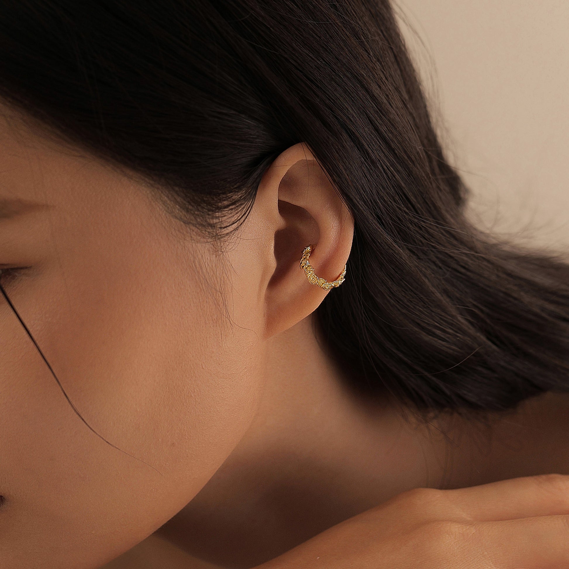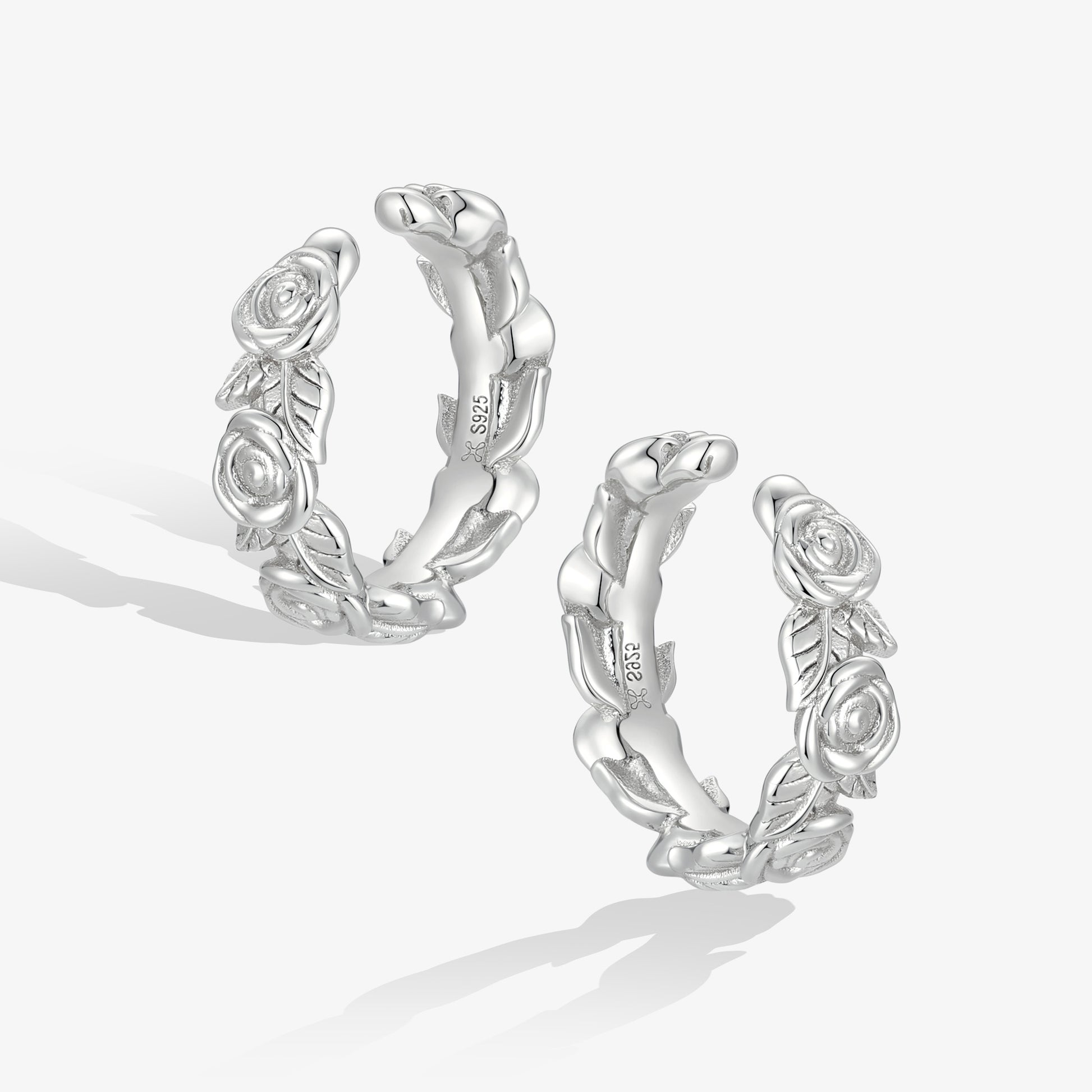 花園·玫瑰系列耳骨夾,以立體雕刻工藝塑造盛放的玫瑰花。