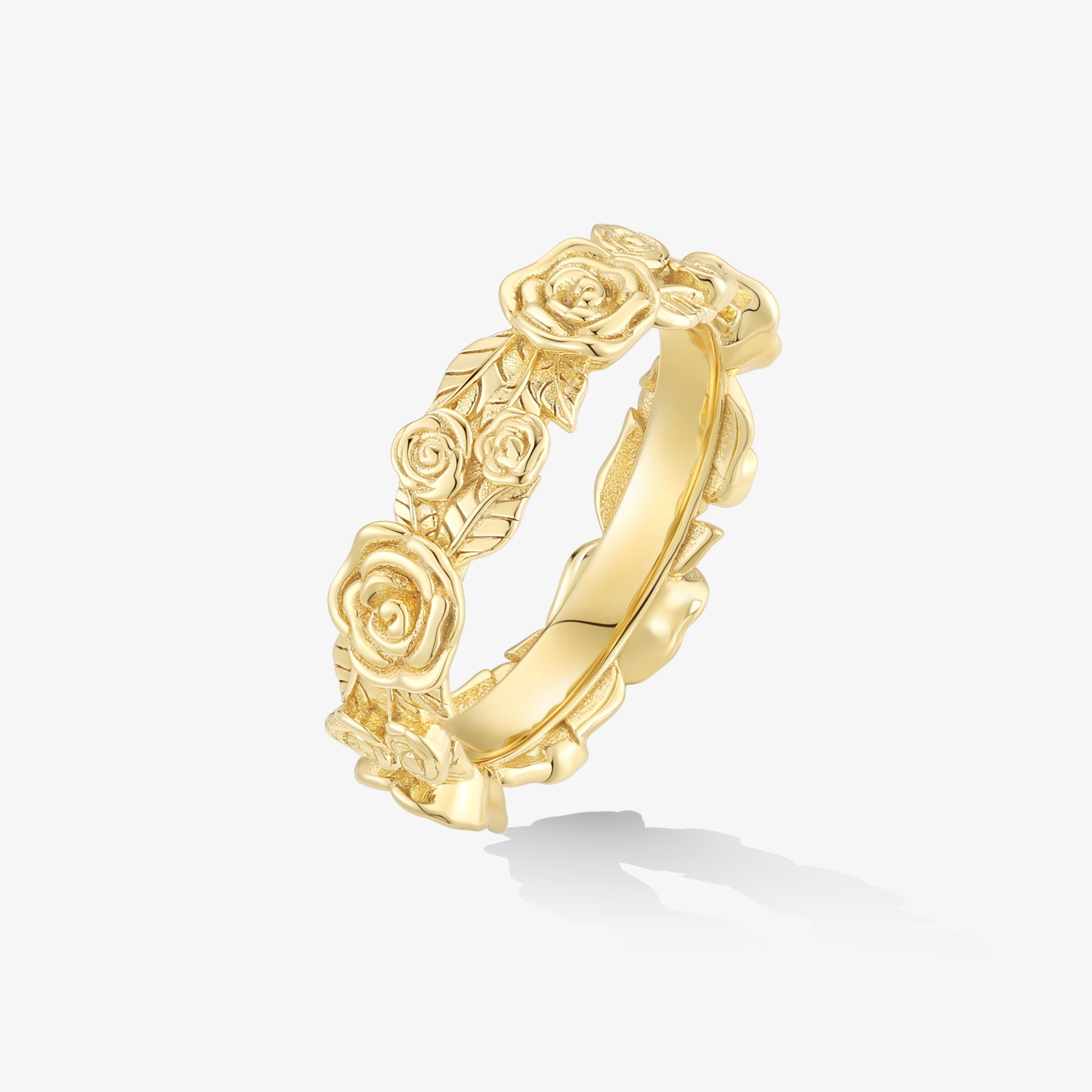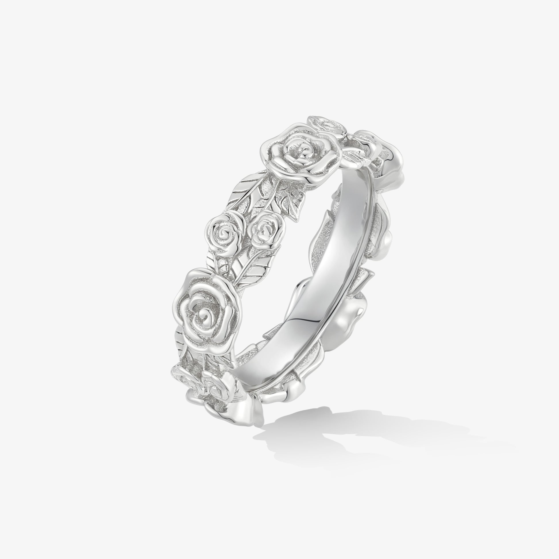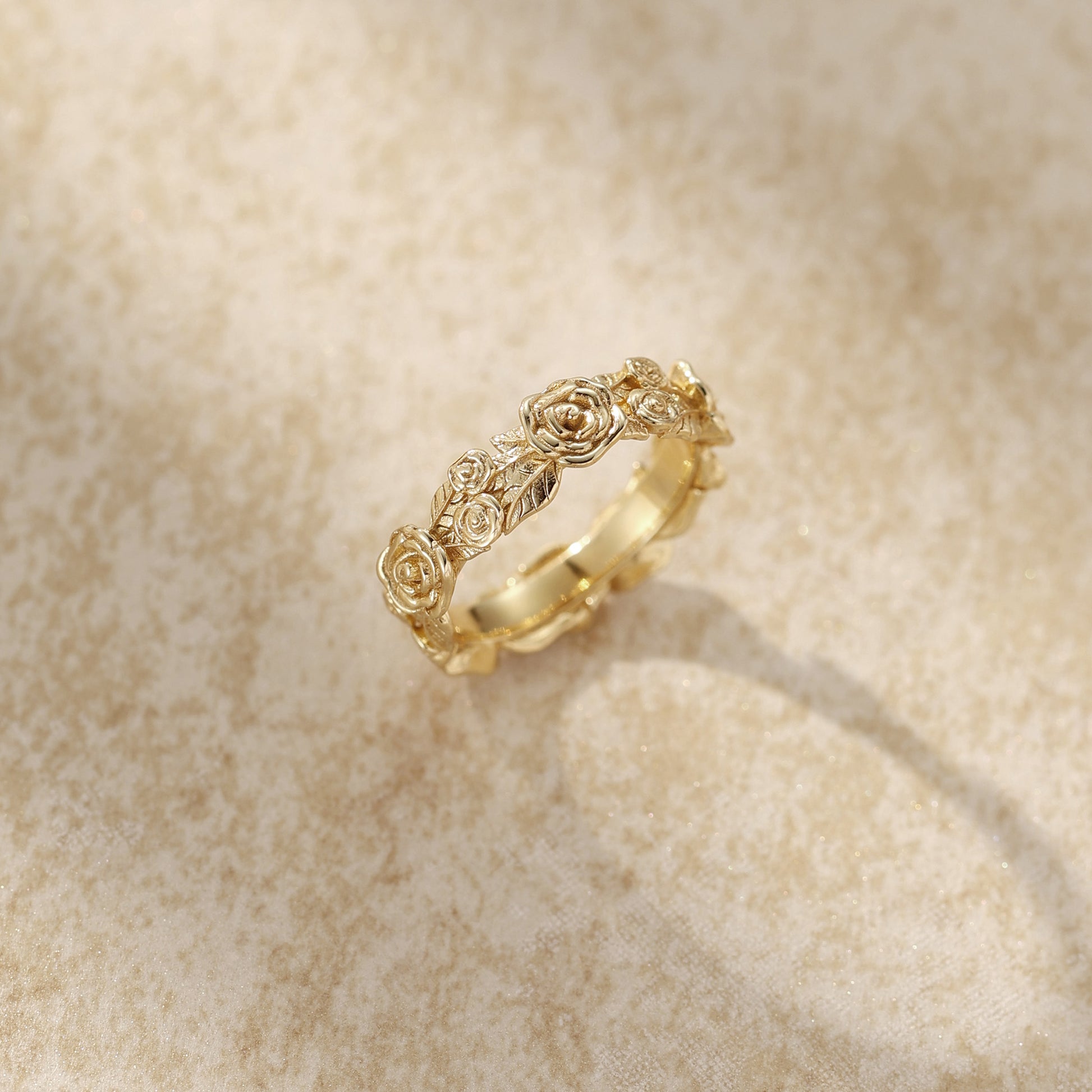 花園·玫瑰系列戒指,以一圈立體雕刻的玫瑰花瓣環繞指間,猶如一座永不凋謝的花園。